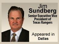 Jim Sundberg spent 16 years of his life as a Major League Baseball player, playing on teams including the Texas Rangers, the Kansas City Royals, the Chicago Cubs, and the Milwaukee Brewers. After playing the game he loves, Jim Sundberg worked announcing the game as a broadcaster for six years--one of Texas' most popular on-air sports personalities. During this time, he spent 6 years as a color analyst for Texas Rangers Television and was voted "Best Broadcast Team" member by the Dallas Observer (1995). Sundberg's refreshing personality and warm speaking style have made him a sought after motivational speaker for the past 20 years, able to convey valuable insights in ways people can easily understand using his wit and humor. In 2008 he was appointed Senior Executive Vice President of the Texas Rangers where he interacts with team President Nolan Ryan and General Manager John Daniels on baseball matters.