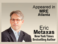 Eric Metaxas is the New York Times bestselling author of Bonhoeffer; he also authored Amazing Grace: William Wilberforce and the Heroic Campaign to End Slavery. His writing was first published in Atlantic Monthly, and has appeared in the New York Times, the Washington Post, Regeneration Quarterly, Christianity Today, National Review Online, Beliefnet and First Things. He has been featured numerous times on CNN, The Fox News Channel and other television networks, and has been a guest on NPR. He is the founder and host of Socrates in the City: Conversations on the Examined Life, a monthly event of entertaining and thought provoking discussions that feature many prominent speakers.